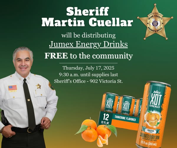 Sheriff Cuellar to Distribute Free Jumex Energy Drinks Tomorrow Morning