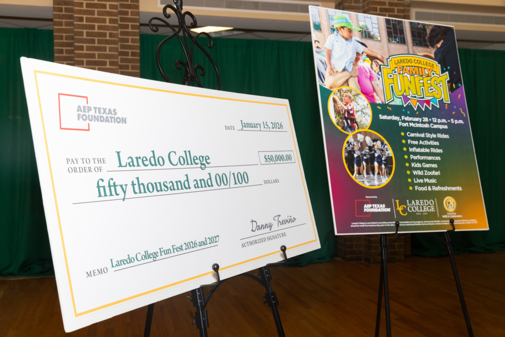 (Laredo, Texas)- The American Electric Power (AEP) Texas Foundation, a longtime supporter of education in the region, is reaffirming its commitment by pledging a $50,000, two-year sponsorship to support Laredo College’s Family Fun Fest and Musicale. During a press conference held Jan. 15, AEP Texas External Affairs Manager Danny Treviño presented the donation on behalf of the foundation.