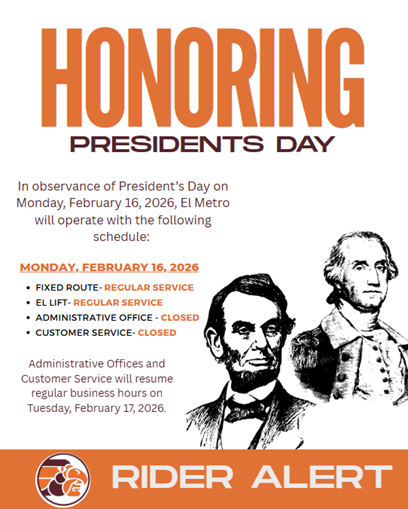 El Metro Transit Announces Service Schedule for Presidents’ Day
