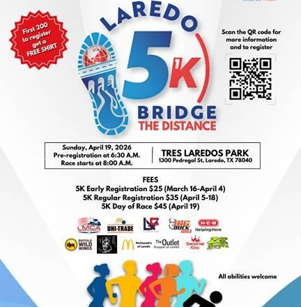 Courtesy Rogelio Uvalle, Laredo, Texas – The City of Laredo, in partnership with the Laredo Bridge System, invites the community to take part in the “Bridge the Distance” 5K Run and 1K Walk on Sunday, April 19, 2026, at Tres Laredos Park as part of International Bridge Week, taking place from April 13-17. This family-friendly