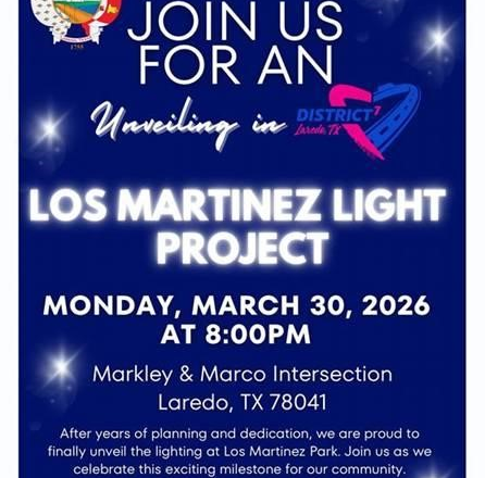 Courtesy Gabriela Ceballos, Laredo, Texas – The City of Laredo and District 7 Council Member Vanessa Perez invite the community to attend the unveiling of the Los Martinez Light Project, a significant improvement aimed at enhancing safety and quality of life for residents in the area. This project brings new lighting to Los Martinez Park,